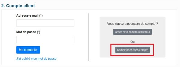 Les commandes sans compte permettent de passer une commande sur le site avec un nombre minimum d'informations et sans authentification. On demande les informations strictement nécessaires et il n'y a pas d'authentification pour de futures commandes sur le site.