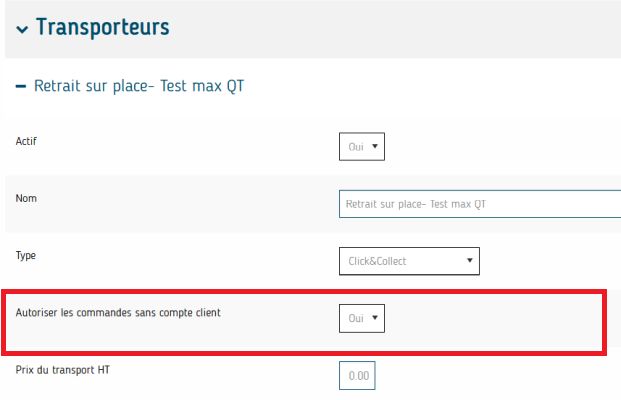 Les commandes sans compte peuvent être activé indépendamment pour chaque mode de livraison.